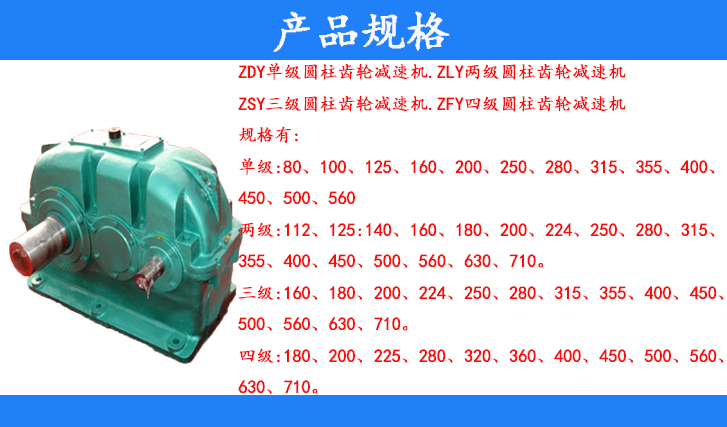 1、ZDY單級圓柱齒輪減速機,ZLY兩級圓柱齒輪減速機,ZSY三級圓柱齒輪減速機ZFY四級圓柱齒輪減速機。