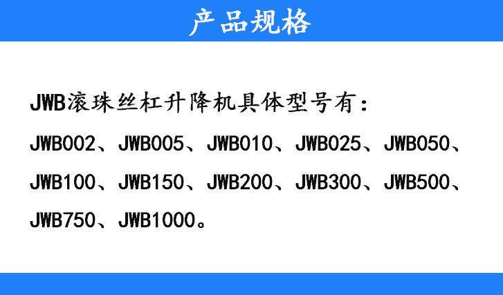 JWB002、JWB005、JWB010、JWB25、JWB050、JWB100、JWB150、JWB200、JWB300、JWB500、JWB750、JWB1000