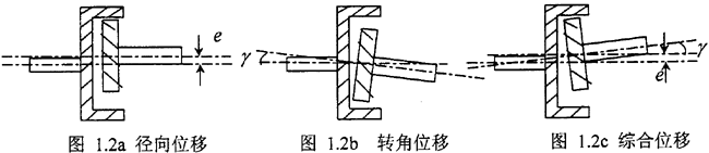 齒輪聯(lián)軸器的分類:一般按齒形分,當(dāng)外齒軸套在工作圓切平面內(nèi)的齒形是直線時稱為直齒聯(lián)軸器;當(dāng)外齒軸套在工作圓切平面內(nèi)的齒形是鼓形時稱為鼓形齒聯(lián)軸器,另外還有其它分類方法。由于鼓形齒輪聯(lián)軸器對安裝誤差不敏感在使用中內(nèi)外齒輪允許較大的偏心(其偏心主要有以下三種形式圖1.2a 、1.2b 、1.2c ) ,因此應(yīng)用比較廣泛。本文主要對鼓形齒輪聯(lián)軸器的特性進行研究。