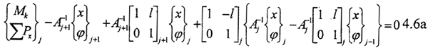 式中[M]、[C]、[K]分別為系統(tǒng)的總質(zhì)量陣、總阻尼陣和總剛度陣,位移向量{X}=(X1,Φ1,…,Xj,Φj,…,Xn-1,Φn-1)T