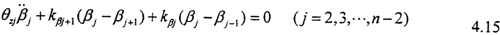 當(dāng)忽略軸承對轉(zhuǎn)子扭轉(zhuǎn)振動的阻尼影響時,則第j個質(zhì)點的扭矩自由振動方程為: