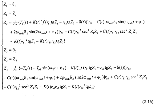 當不考慮偏心質(zhì)量,而只考慮存在齒輪齒側(cè)間隙時,方程組(2-14)可化為: