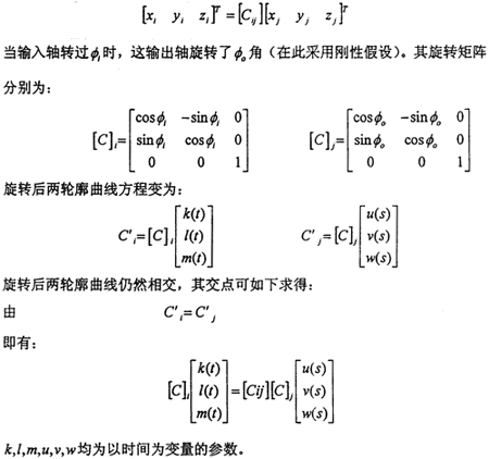 設(shè)兩曲線的交點M(嚙合點)與兩軸的交點O的連線OM與輸入軸(Zi軸的負半軸)的夾角和OM與輸出軸和夾角分別為:(在此處|OM|=