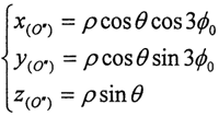 為求出這個參數(shù)方程,我們必須解決動坐標(biāo)系O″X″Y″Z″同定坐標(biāo)系OXYZ之間的坐標(biāo)變換矩陣[Moo″]。