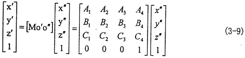 (3-7)式中A1、A2、A3、A4、B1、B2、B3、B4、C1、C2、C3、C4等于其在矩陣[Mo′o″]中對應(yīng)位置的表達(dá)式。