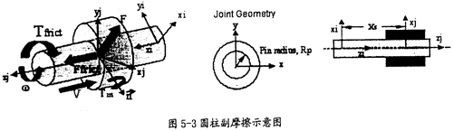 在雙聯(lián)三叉桿式萬向聯(lián)軸器的模型中,相互運(yùn)動的構(gòu)件較多,各個構(gòu)件之間的活動接觸面都會產(chǎn)生摩擦力的作用,不同的運(yùn)動副形式,摩擦產(chǎn)生的來源也不一樣,在施加摩擦?xí)r要根據(jù)不同的摩擦來源考慮各因素的影響。在本章的分析中,各個運(yùn)動副間都被加上了摩擦力。由于涉及到了如下四種運(yùn)動副,現(xiàn)對它們摩擦力施加的考慮因素作如下的陳述: