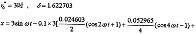 為了說(shuō)明柴油機(jī)閃—諧波平衡法的正確性和精度,我們分別用一個(gè)簡(jiǎn)單例子和大撓度彈性聯(lián)軸器系統(tǒng)(4-2)進(jìn)行計(jì)算,同時(shí)與相應(yīng)的數(shù)值仿真計(jì)算作比較。