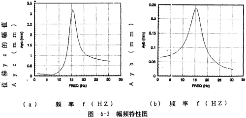 從圖6-2(b)可以知道,聯(lián)軸器從動端質(zhì)量塊mb的位移幅值A(chǔ)yb從1赫茲開始隨頻率增大而迅速增大直至軸系的一階固有頻率15.2赫茲,然后隨頻率增大而迅速減小,在一階固有頻率處達(dá)到最大值。