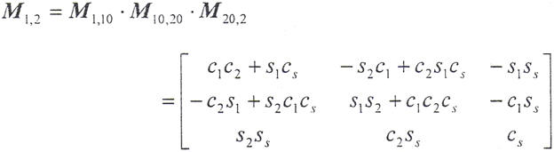 四個坐標系有共同的原點O,x10與x20軸線重合,z10與z20軸線夾角為兩齒輪軸線的軸交角θ(y10與y20軸線的夾角亦為θ)。