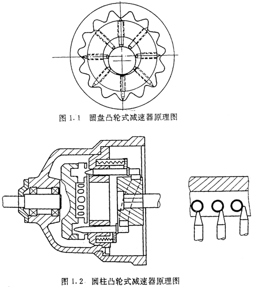 圖1.1為圓盤(pán)凸輪式,采用滾柱徑向滑槽式結(jié)構(gòu),其目的是為了得到大的減速比及大的傳遞扭矩。顯然這種結(jié)構(gòu)由于滾柱系尖頂易磨損,降低了其承載能力。