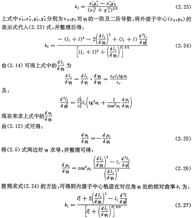根據(jù)微分幾何,外滾子中心軌跡H2的相對曲率k2可由下式計算: