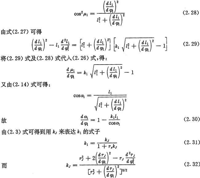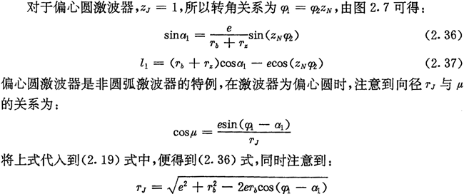 式(2.36)、(2.37)、(2.38)是偏心圓激波器的推桿減速器中l(wèi)1、a2與φ2的基本關系式,后面常用到它們。