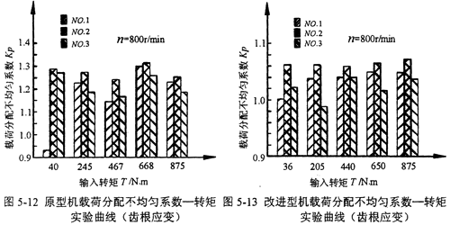 在不同轉(zhuǎn)速、不同轉(zhuǎn)矩下,通過(guò)實(shí)驗(yàn)分別測(cè)得三片環(huán)板上應(yīng)變信號(hào)的最大值和平均值,即可用公式(5-2)求得每片內(nèi)齒環(huán)板的載荷分配不均勻系數(shù)KP,三環(huán)減速機(jī)的載荷分配不均勻系數(shù)取三片內(nèi)齒環(huán)板中的最大值。