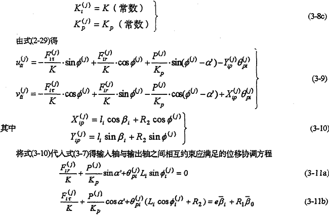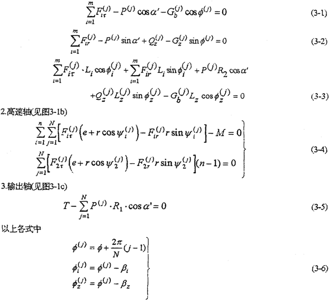 (3-11)及式(3-14)就是少齒差內(nèi)齒行星傳動機(jī)的動力分析補(bǔ)充方程。