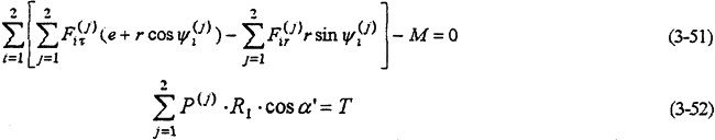 由式(3-57)及(3-58)比較可知,偏置式受載比對稱式的受載波動大(隨轉(zhuǎn)角),因而使箱體產(chǎn)生的振動也就更強烈。