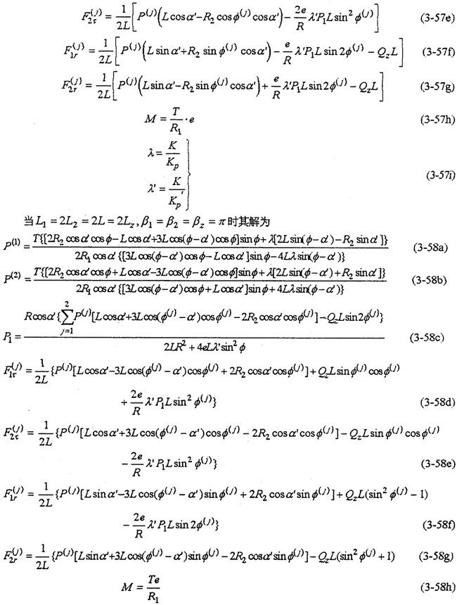 由解式(3-64)可見,嚙合力并不等于常量,而是與轉(zhuǎn)角φ及連桿慣性力QC等因素有關(guān)。設計時應保證P(j)≥0,以免內(nèi)齒輪副發(fā)生干涉,出現(xiàn)負向嚙合圖現(xiàn)象。