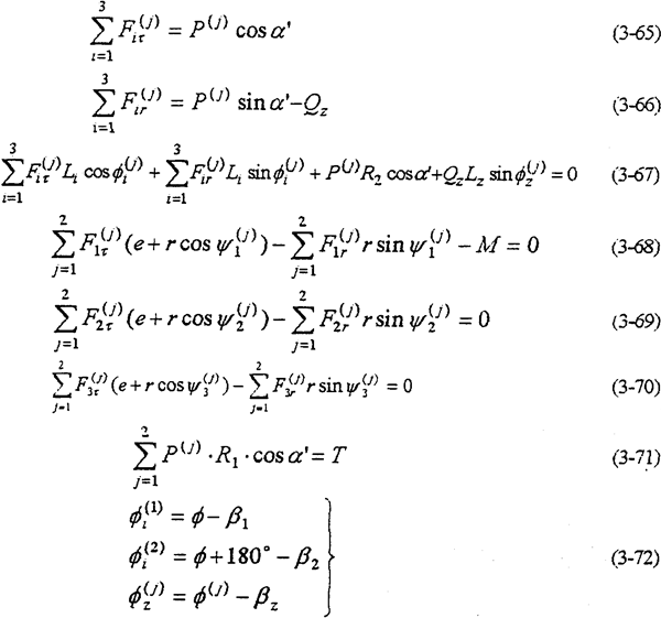 ——共可得到4個方程。由式(3-59)-(3-63)就構(gòu)成多相并列雙曲柄機構(gòu)輸入式二齒環(huán)內(nèi)齒行星傳動機構(gòu)的動力分析數(shù)學模型。