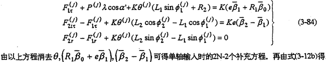 式(3-86)、(3-87)就是考慮間隙誤差的動力分析補充方程。