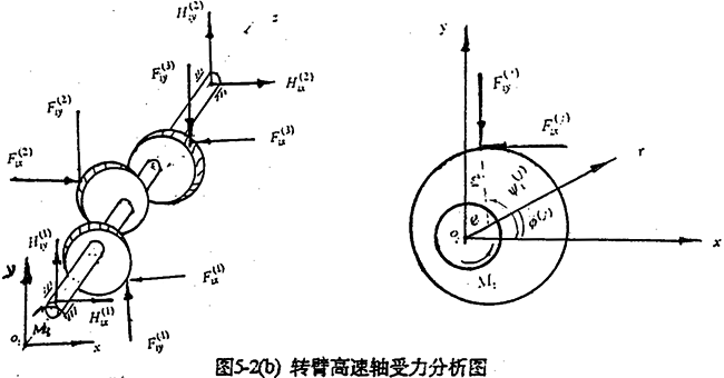 對(duì)齒板及高速轉(zhuǎn)臂軸,輸出軸進(jìn)行動(dòng)態(tài)靜力分析(見圖5-2),可得三環(huán)減速器的動(dòng)力分析基本方程(忽略各構(gòu)件重力作用)。