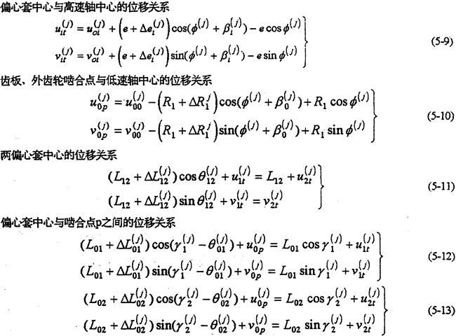 當(dāng)只考慮行星軸承變形和內(nèi)齒圈變形時(shí),式(5-18)及(5-19)就變成(3-11)、(3-14)。