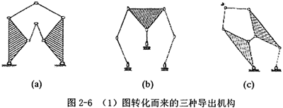 由(1)圖,取不同的構(gòu)件為機架,經(jīng)過特定化后,可轉(zhuǎn)化為三種導出機構(gòu),如圖2-6。