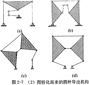 由(2)圖,取不同的構(gòu)件為機架,經(jīng)過特定化后,可轉(zhuǎn)化為四種導出機構(gòu),如圖2-7。