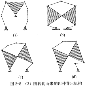由(3)圖,取不同的構(gòu)件為機架,經(jīng)過特定化后,也可轉(zhuǎn)化為四種導出機構(gòu),如圖2-8。