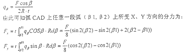 力F的主方向是沿著切線方向,它通過主螺栓作用在疊片螺孔內(nèi)側(cè)弧CAD上,并按余弦規(guī)律分布,這樣可將表面力等效到相應的節(jié)點上,設A為內(nèi)圈上一節(jié)點<AOX=β如圖(a ),