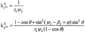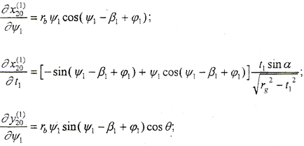 式中 ψ1、t1——齒面參變量,設(shè)α1為齒面某一點(diǎn)k1處的壓力角,則ψ1=tgα1。