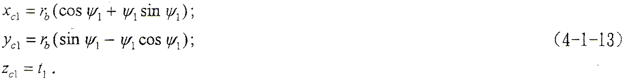 設(shè)中截面齒廓為漸開線,xc1坐標(biāo)軸線通過漸開線在基圓上的起點(diǎn),(o,xc1,yc1,zc1)坐標(biāo)下的齒面方程為