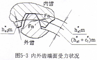 一般鼓形齒聯(lián)軸器的齒頂高系數(shù)ha1*=1,徑向間隙系數(shù)c1*=0.25,全齒高h(yuǎn)=2.25m,采用標(biāo)準(zhǔn)齒輪,其內(nèi)外齒輪分度圓齒厚大致相等。它的主要優(yōu)點(diǎn)是內(nèi)外齒輪加工工藝性好,可采用標(biāo)準(zhǔn)齒輪滾刀和插齒刀進(jìn)行加工,且尺寸計(jì)算簡單。但是這種鼓形齒聯(lián)軸器的外齒輪齒根抗彎強(qiáng)度比內(nèi)齒輪齒根抗彎強(qiáng)度要低,即內(nèi)齒輪齒根彎曲強(qiáng)度有富余。因此,可設(shè)法增加外齒輪齒厚,提高外齒輪齒根彎曲強(qiáng)度。通常采用兩種方法:一是采用特殊刀具減簿內(nèi)齒輪齒厚而增加外齒輪齒厚,使內(nèi)外齒輪的抗彎強(qiáng)度接近一致;另一種方法是采用變位短厚齒型內(nèi)外齒輪,降低外齒輪齒高,加大外齒輪齒厚,使其粗短,以提高外齒輪的抗彎強(qiáng)度[75]。前一種方法需采用專用的瘦齒型滾刀,這給加工帶來不少麻煩,因此在國內(nèi)不宜推廣。文獻(xiàn)[75]所出了一種變位短厚齒型鼓形齒聯(lián)軸器的設(shè)計(jì)制造方法,由于是采用標(biāo)準(zhǔn)滾刀和插齒刀進(jìn)行加工,加工方法簡單易行,因此工藝性好,生產(chǎn)效率高,是一種較理想的適宜推廣應(yīng)用的設(shè)計(jì)加工方法。但是,該文提出采用齒頂高系數(shù)ha1*=0.8不一定合理,因?yàn)辇X頂高系數(shù)的確定一方面要使內(nèi)外齒輪齒根彎曲強(qiáng)度一致,另一方面又要使內(nèi)外齒輪齒面具有足夠的接觸強(qiáng)度及內(nèi)齒輪齒頂厚應(yīng)大于0.25m。因此必須建立優(yōu)化數(shù)學(xué)模型進(jìn)行計(jì)算來確定。將內(nèi)外齒輪輪齒簡化成懸臂梁受力(如圖5-3所示)[127],本問題是要使內(nèi)外齒輪齒根有接近的齒根彎曲強(qiáng)度,則目標(biāo)函數(shù)為