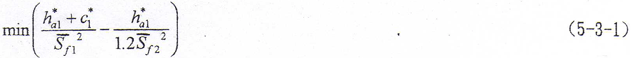 由目標(biāo)函數(shù)(5-3-1)式及約束條件(5-3-2)式便構(gòu)成本問題的優(yōu)化數(shù)學(xué)模型。通過對優(yōu)化數(shù)學(xué)模型的求解,可以計(jì)算出不同齒模數(shù)及相應(yīng)的鼓度半徑下的優(yōu)化齒頂高系數(shù)值。表5-2給出了幾種不同輸入?yún)?shù)下的求解值,從表中數(shù)據(jù)可以看出,不同齒數(shù)及鼓度半徑,其優(yōu)化齒頂高系數(shù)不同,但都不超過0.7?紤]到齒頂高系數(shù)的統(tǒng)一,建議采用齒頂高系數(shù)為0.7是適宜的。值得指出的是,這種齒頂高系數(shù)的齒輪是采用標(biāo)準(zhǔn)齒頂高系數(shù)滾刀和插齒刀用特殊方法進(jìn)行加工的。