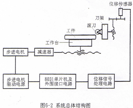 普通滾齒機(jī)的工作臺(tái)是用絲桿螺母及其手動(dòng)機(jī)構(gòu)來實(shí)現(xiàn)徑向進(jìn)刀的,可以在其上加設(shè)驅(qū)動(dòng)裝置,實(shí)現(xiàn)刀架沿工件徑向的相對(duì)運(yùn)動(dòng)要求。刀架的上下移動(dòng)也可以用伺服機(jī)構(gòu)驅(qū)動(dòng),實(shí)現(xiàn)刀架和工作臺(tái)兩軸驅(qū)動(dòng)的數(shù)字控制。但是刀架有較大的自重,其驅(qū)動(dòng)還要克服刀具切削力,因而需要較大的驅(qū)動(dòng)力;另外,普通滾齒機(jī)的結(jié)構(gòu)決定了刀架驅(qū)動(dòng)數(shù)控伺服機(jī)構(gòu)及減速機(jī)裝置沒有足夠的安裝空間,這將使機(jī)床的改造變得較為復(fù)雜。機(jī)床本身的刀架進(jìn)給運(yùn)動(dòng)鏈設(shè)計(jì)完美,可以方便、平穩(wěn)地實(shí)現(xiàn)進(jìn)給運(yùn)動(dòng)。因此本設(shè)計(jì)采用工作臺(tái)徑向進(jìn)給數(shù)控驅(qū)動(dòng)、位移傳感器檢測(cè)刀架位移的準(zhǔn)二軸數(shù)控方案。