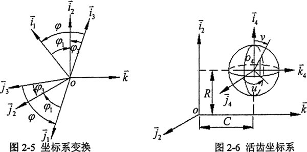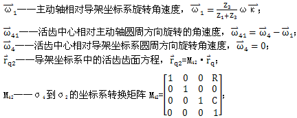 為建立該傳動的嚙合方程,使在不同坐標系中的各個矢量進行計算,需將所有矢量轉(zhuǎn)換到統(tǒng)一的坐標系中,為方便求解,將所有矢量均轉(zhuǎn)換到導架的坐標系σ2中。