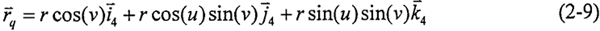 圓柱正弦活齒傳動中的活齒為規(guī)則球體,則其齒面方程即為球面方程,活齒坐標系如圖2-6 所示,活齒齒面方程用球面坐標表達為: