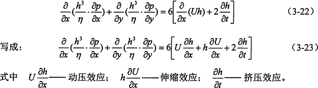 必須強(qiáng)調(diào)指出:上式的Reynolds方程是根據(jù)一系列假設(shè)推導(dǎo)出來的,適用于一般工況條件的潤滑計(jì)算。在特殊的工況條件下,當(dāng)某些假設(shè)不能成立時(shí),必須針對具體情況推導(dǎo)相應(yīng)的Reynolds方程形式。