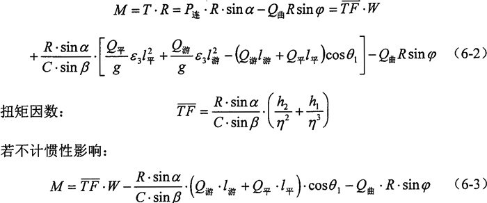 公式(6-2)、(6-3)為雙擺機(jī)減速器曲柄軸扭矩的計(jì)算公式。