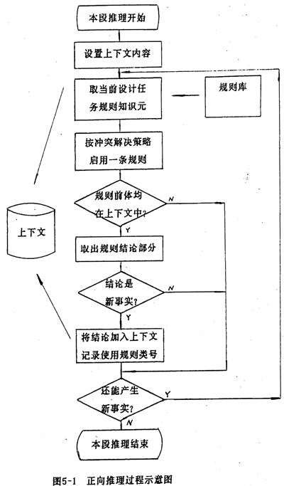 正向推理系統(tǒng)中,用戶先輸入與當(dāng)前問題有關(guān)的信息,構(gòu)成當(dāng)前數(shù)據(jù)庫(上下文)。正向推理的示意圖如圖5-l。