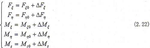 △Fξ,△Fη,△Mξ,△Mη,△Mz分別為相應(yīng)的動態(tài)力和動態(tài)力偶矩。