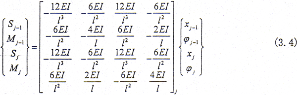式中 {q}={x1 y1 φ1 ψ1 … xje yje φje ψje xji yji φji ψji … xn yn φn ψn}T
