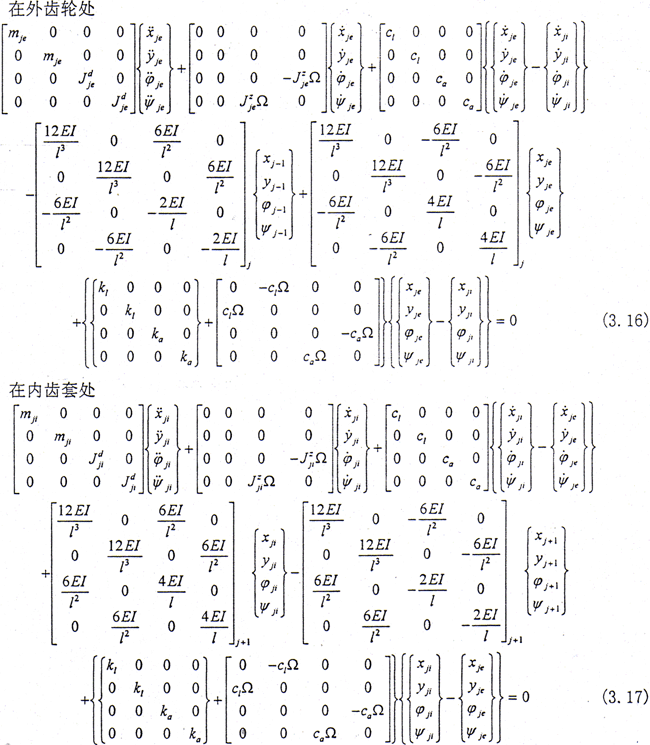 這樣就得到了第j個(gè)結(jié)點(diǎn)(外齒輪、內(nèi)齒套)處的彎曲運(yùn)動微分方程。