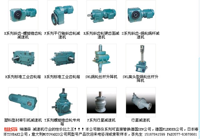 The company production of R series helical gear reducer, S series helical gears - worm reducer, F series parallel shaft helical gear reducer, K series helical gears, bevel gear motor, cycloidal pin wheel reducer, T series helical bevel gear steering box, H, B series standard industrial gear box, a worm screw lift RV series worm gear speed reducer, such as more than 10 series, thousands of specifications products, is currently a decelerator industrial power transmission the most widely used.