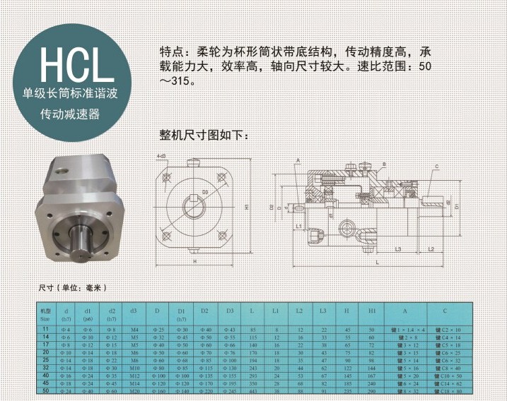 HCL型長(zhǎng)筒單級(jí)諧波減速機(jī)/HCL-14-100-整機(jī)