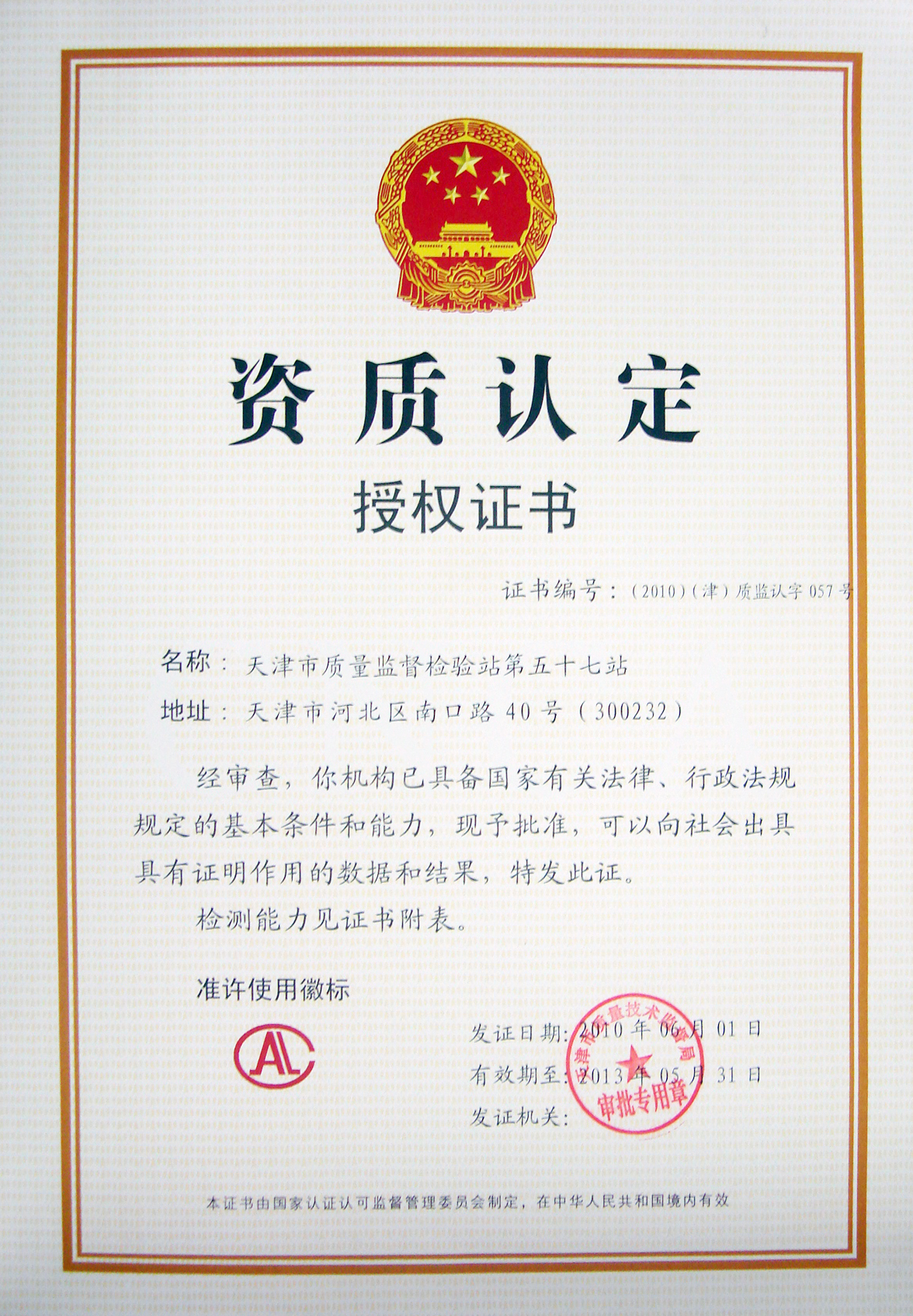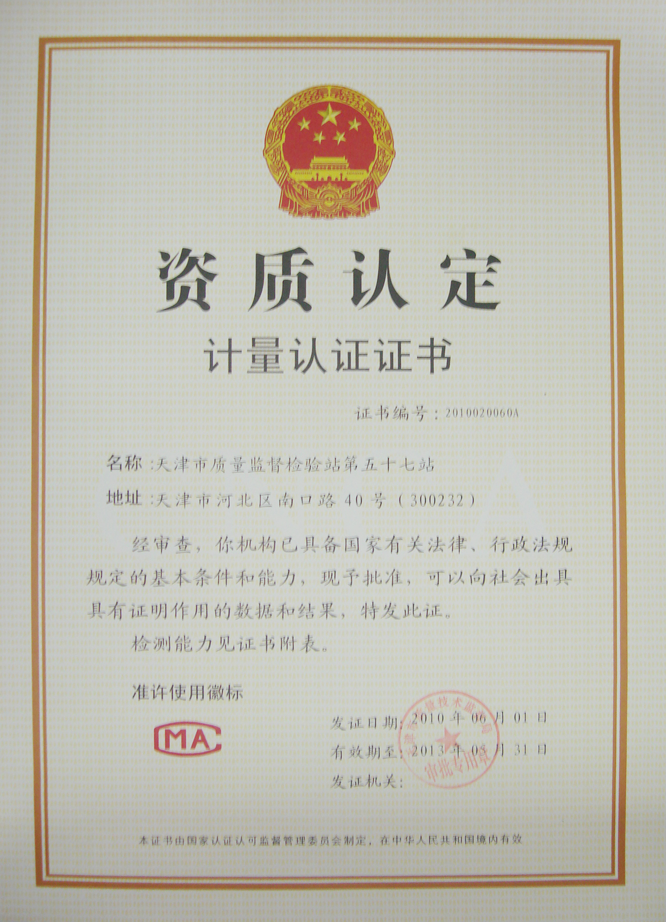 • 資質(zhì)認(rèn)定計(jì)量認(rèn)證證書(shū) 資質(zhì)認(rèn)定計(jì)量認(rèn)證證書(shū)