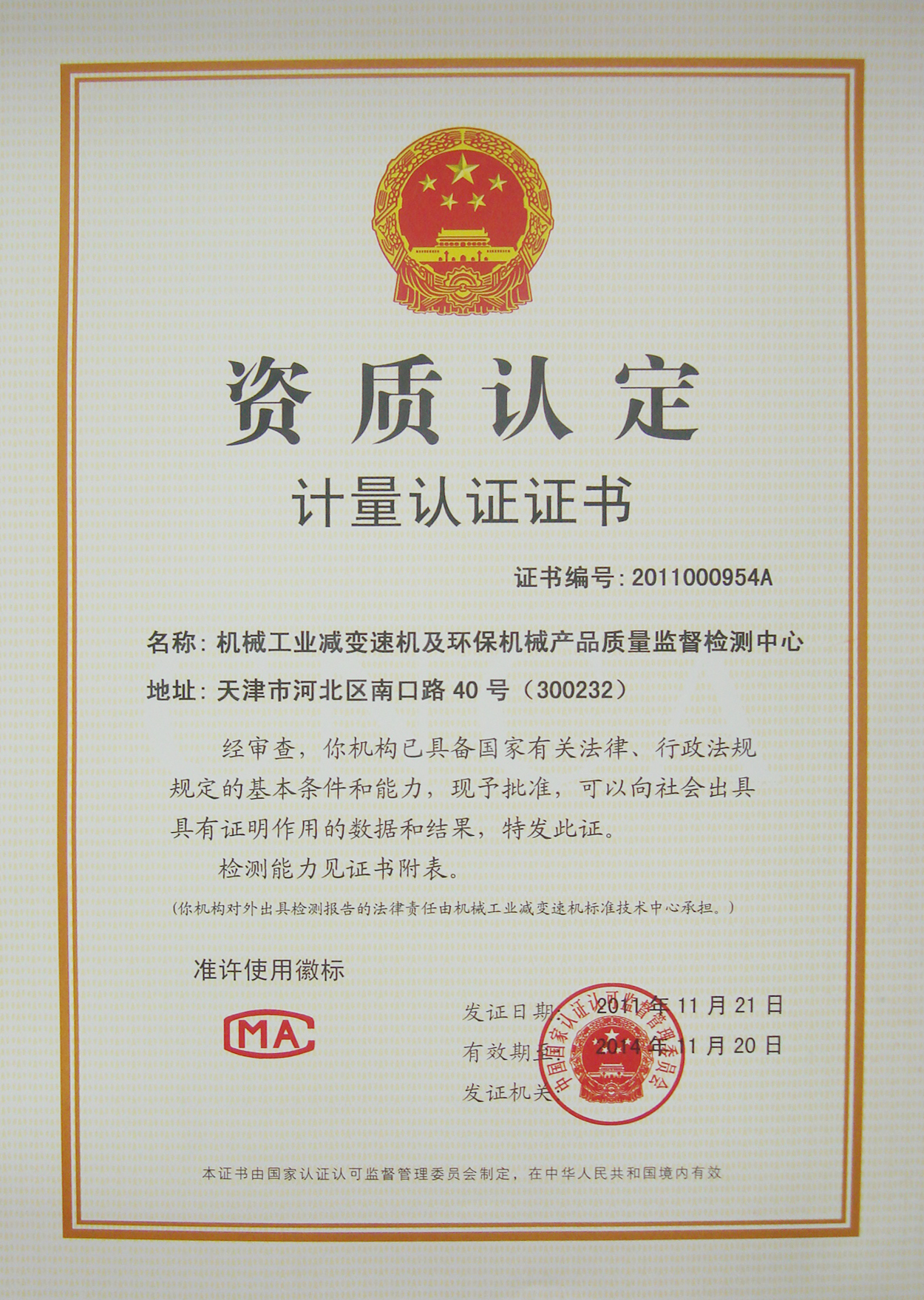 • 擺線(xiàn)針輪減速機(jī)申請(qǐng)資質(zhì)認(rèn)定檢測(cè)能力表