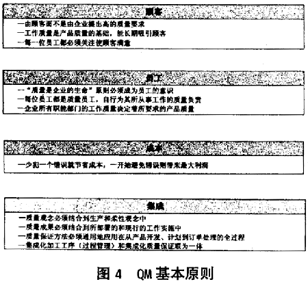 在上述歸納中,頂層是顧客。顧客對產(chǎn)品而不是對管理提出質(zhì)量要求。工作實施的質(zhì)量是產(chǎn)品質(zhì)量的基礎(chǔ),并能長期吸引顧客。每一位員工都必須關(guān)注使顧客滿意。所以,“質(zhì)量是企業(yè)的生命”這一原則必須成為員工的意識。因此,每位員工都是質(zhì)量員工,自行對其所從事工作的質(zhì)量負(fù)責(zé)。企業(yè)所有職能部門工作實施的質(zhì)量決定著所要求的產(chǎn)品質(zhì)量。少犯一個錯誤就節(jié)省成本,一開始避免錯誤則帶來最大利潤。過程集成是QM 的又一項基本原則。