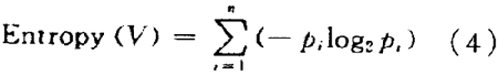 候選刀具集V 的繁雜程度可用信息論中廣泛使用的一個度量標準一一熵(entropy )來刻畫。由于候選刀具集有n 種不同屬性值,則候選刀具集V 相對于這n 種候選刀具的熵定義為