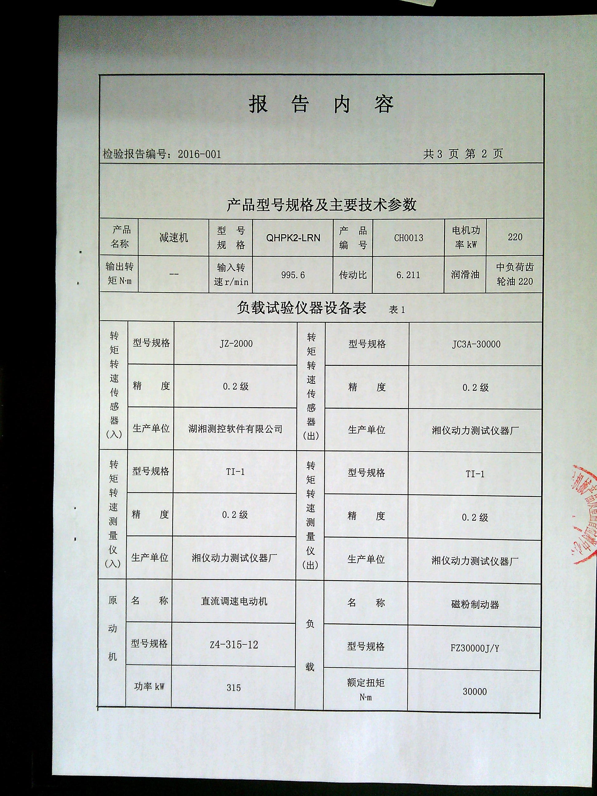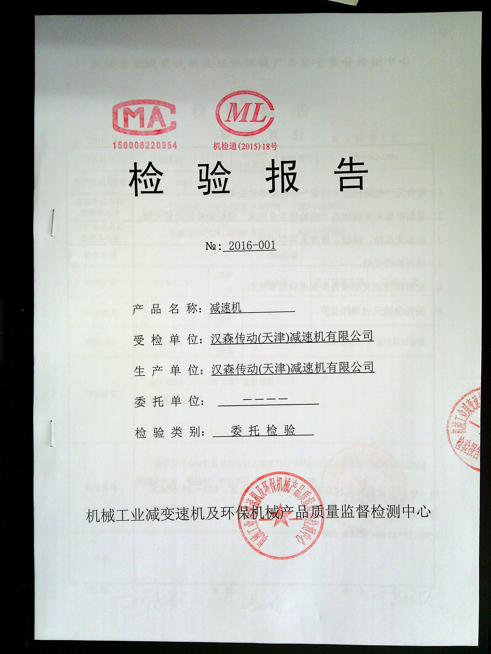 減速機(jī)檢驗(yàn)報(bào)告檢測報(bào)告