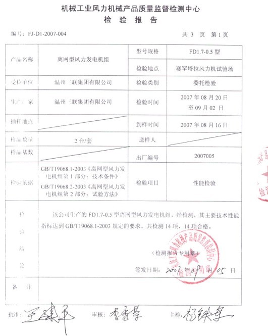 機械工業(yè)風力機械產(chǎn)品質量監(jiān)督檢測中心